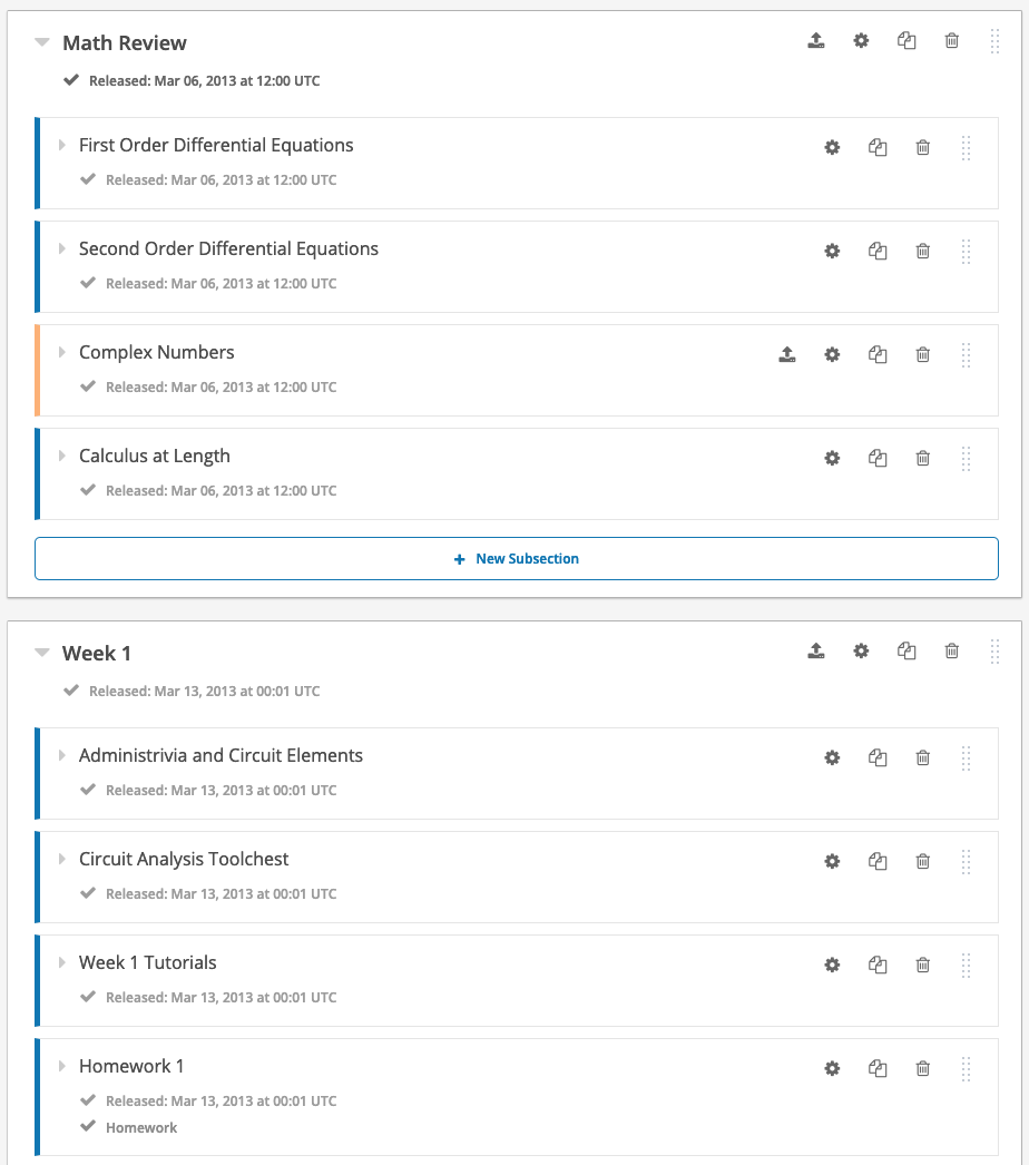 21C Skills Creators Studio uses a simple hierarchy of sections and subsections to organize your content.